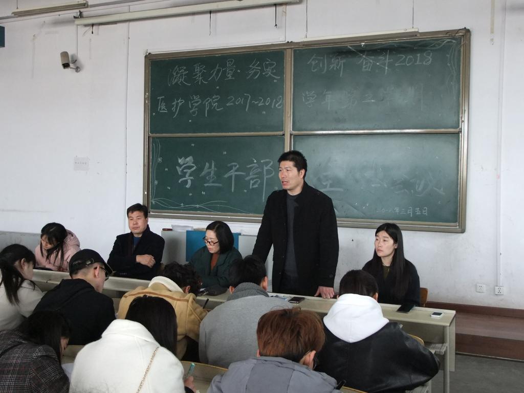 会上,团、学负责人邵凡老师、高培杰老师分别对上学期的团、学工作进行了回顾总结;闫慧峰科长对本学期的具体工作做了部署安排并提出了明确要求;学生宿舍管理负责人李少康老师指出学生宿舍不仅是学生休憩的港湾,同时也是良好校风学风的重要组成部分,建设并发挥好优秀的宿舍文化,对养成良好的学习和生活习惯具有促进作用,希望全体学生干部加强协调配合,共同营造舒适安全的宿舍环境。最后,周风雷副院长要求全体学生干部要珍惜机会,锻炼自己,在工作中要树立服务意识,培养优秀的政治素养和道德品质、具有较强责任感和良好榜样形象、具有主动性和创造力,并鼓励大家在新的学期凝心聚力,团结协作,励志向上,再创佳绩!