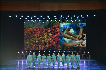 文艺汇演节目形式丰富,护理礼仪展示、情景剧、朗诵、舞蹈、歌曲等让人应接不暇。演出在开场舞《节日》中拉开序幕,yl23411永利(集团)有限公司官网的教师与市中心医院的护士长为我院的护理专业学生进行了授帽,并带领他们进行了宣誓。市中心医院的医生们的诗朗诵《青春》“走心”演绎感人肺腑;yl23411永利(集团)有限公司官网学生演出的情景剧《“救”在身边》展示了“急救”在生命遇到危险时的重要作用;歌曲《圣洁的真爱》嘹亮而坚定,描绘着白衣天使们的美好;歌曲《我们的中国梦》将整台文艺汇演的气氛推向高潮。