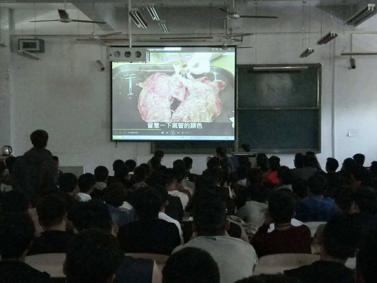 会议开始前先播放了吸烟有害健康的宣传片和学校有关禁烟的规定,视频通过大量的香烟吸入肺,在长时间的影响下,肺的变化与未吸过烟的肺形成了鲜明的对比,让同学们深刻的了解到吸烟对人的身体产生不可逆的伤害。视频最后的“你蝕烟,烟蝕你”更是让同学们害怕不已。