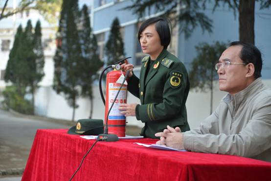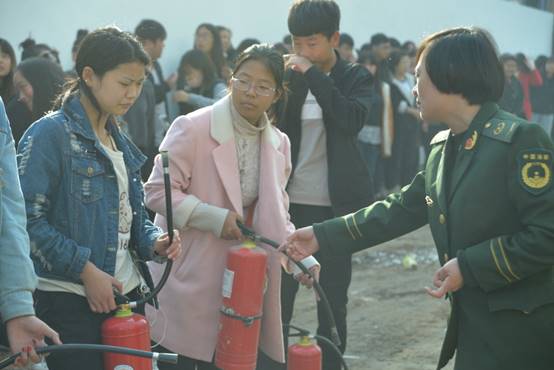 白姣教官结合实际、深入浅出的给大家讲了消防、逃生知识,大家受益匪浅。随后在校操场举行了消防灭火演练,各班学生踊跃参与,教官示范、师生动手,掌握了干粉灭火器使用方法、技巧,对火灾的危害有了更多更深的认识,安全意识进一步增强。