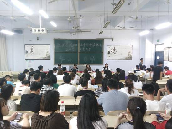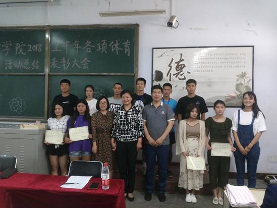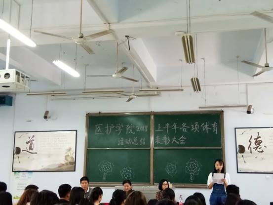 紧接着闫慧峰科长宣读了《关于对我院2018上半年参加三门峡职业技术学院阳光体育系列活动暨第十六届大学生运动会优秀团队和先进个人的表彰决定》,肯定了医护学子们在2018上半年各项体育赛事中取得的成绩,同时希望受到表彰奖励的优秀团队和先进个人再接再厉,再创佳绩。随后杨丽波书记为受表彰的优秀团队和先进个人代表进行了颁奖。