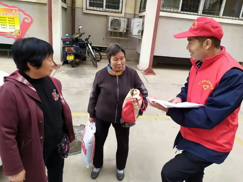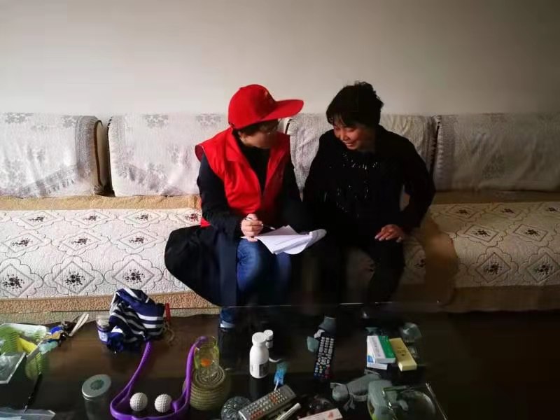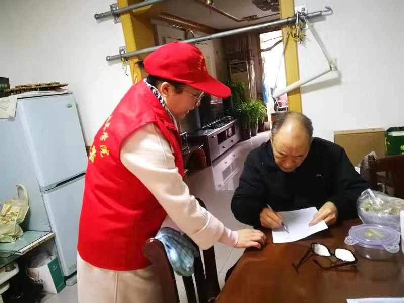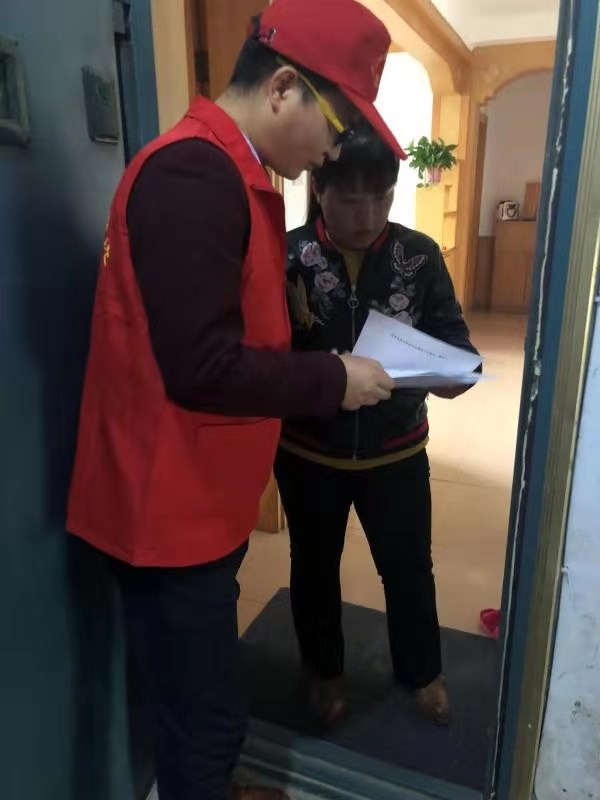 此次志愿活动以入户宣传、调查问卷的形式进行,志愿者们分组、分楼到居民家中进行政策理论宣讲和问卷调查。