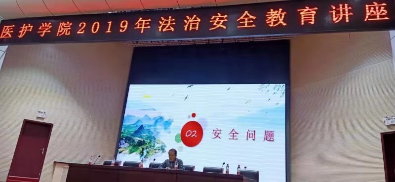 杜院长以“遵纪守法 重视安全 维护校园和谐稳定”为主题,以“作为一个国家的公民一个新时代的大学生在全面依法治国中所尽的责任与义务”以及“什么是校园安全?大学生应该具备的安全素质及与大学生密切相关的安全知识”,详细分析了当前社会和校园周边的安全稳定形势,对学生应有的法治责任以及如何提高自身的法律意识、安全素质等问题进行了生动的阐述。从消防、食品、交通、心理、网络诈骗、传染病防控等方面为同学们做了一场精彩的安全法治教育课。杜院长结合多年在校主抓安全管理工作的经历,用鲜活生动的案例,教育同学们要主动防范,做学法、知法、用法、守法的新时代优秀大学生。