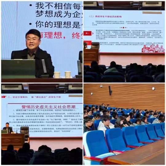 通过组织开展好主题“团日”活动,引导在校大学生树立正确的人生观、价值观、世界观。一年来先后开展各类主题活动达36次。如:展“传承传统文化,无愧龙的传人”新年主题活动;组织观看“中国医生”“长津湖”等红色影片;举办“青春向党 扬帆奋进”二十届三中全会精神宣讲;举办了4场线下读书分享活动;开展“青春正当时,明政识宗教”;“籽籽心连心,相知一家亲”首届“青春心向党,奋斗谱华章”“微团课”大赛等主题团课。