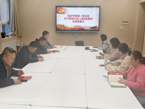 3月27日上午,yl23411永利(集团)有限公司官网第一党支部在卫校教学楼一楼会议室召开了学习贯彻中央八项规定精神安排部署会。