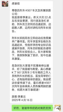 事后,杨乐乐同学表示:“当时听到列车广播寻找医务人员,我第一时间赶了过去。看到老人情况有所好转,我悬着的心才稍稍放下。作为一名医学生,救死扶伤是我们的责任,我只是做了应该做的事。没想到老人和列车长特意来感谢我,这让我既感动又有些不好意思。其实,能帮助到他人,我自己也感到非常欣慰。感谢学院的培养和老师的教导,让我有机会用所学知识去帮助需要帮助的人。”