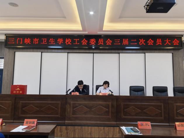 党总支委员、教学副院长任彦斋宣读了《三门峡市卫生学校工会三届二次会员大会选举办法(草案)》,大会通过举手表决通过了《大会选举办法(草案)》。在监票人李旸、郑超的监督下,大会选举产生了三门峡市卫生学校第三届工会委员会新的工会主席、副主席,经费审查委员会委员,女职工委员会委员,劳动法律监督委员会委员。