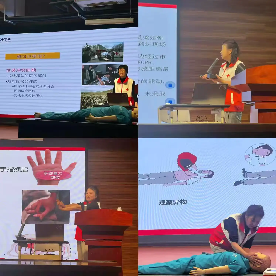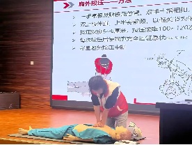 当同学们仍沉浸在红十字会百年人道史诗的余韵中时,讲师们倏然将时空拉回现实,“生死时速里,每一秒都是生命的倒计时。”借助人体模型,讲师们又细致讲解了心肺复苏的核心要领,展示了如何精准定位胸外按压点,并以规范节奏演示按压与人工呼吸。