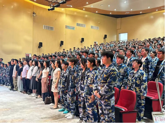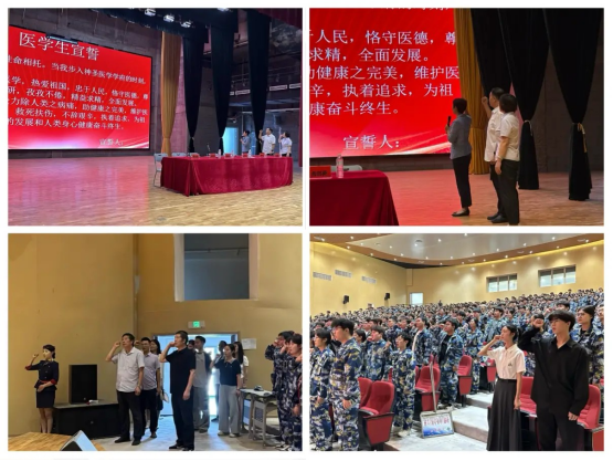 典礼在雄浑激昂的国歌声中拉开帷幕,全体师生肃立齐唱,目光坚定,展现出新一代医学人昂扬的精神风貌。
