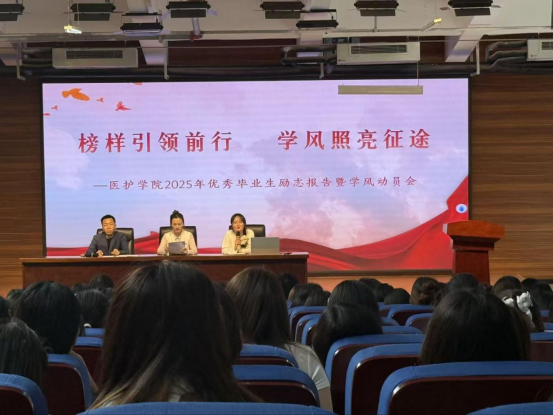 为强化学风建设,激发学生学习热情,9月24日下午,yl23411永利(集团)有限公司官网在71324报告厅成功举办“榜样引领前行,学风照亮征途”2025年优秀毕业生励志报告暨学风动员会。学院就业工作负责人钱职礼老师、杨潇同学的辅导员邵凡老师,以及2024级、2025级专科及中专部各班学生代表共计300余人参会。