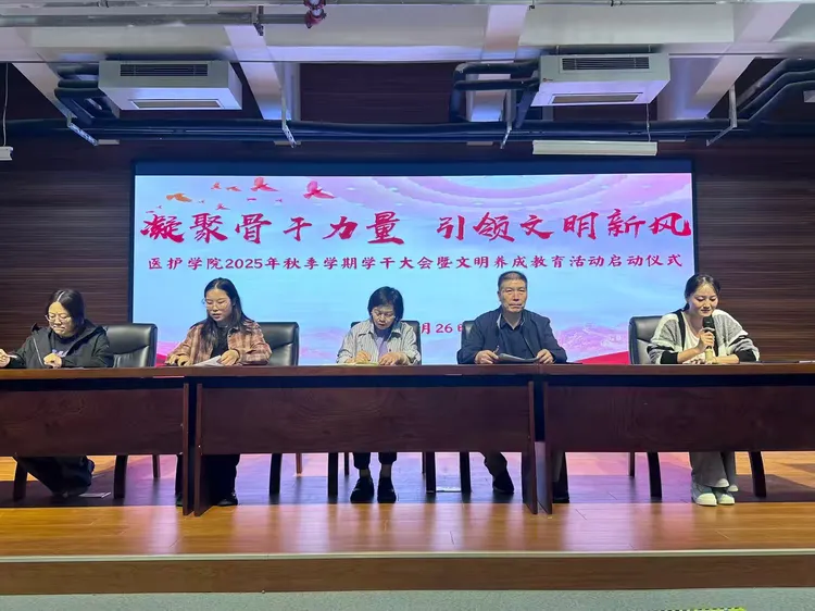 为深入贯彻落实立德树人根本任务,培育具有“仁心仁术”职业精神的医学人才,9月26日,yl23411永利(集团)有限公司官网在71324报告厅隆重举行2025年秋季学期学生干部大会暨“文明素养•医路同行”文明养成教育活动启动仪式。院部团总支、学生会、自管会、创新创业协会及各班级学生干部代表共计300余人参加活动。大会由自管会负责人邵凡老师主持。