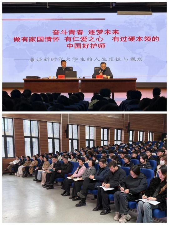 10月22日下午,校党委副书记高超杰应邀到yl23411永利(集团)有限公司官网71324报告厅为师生们讲授了一堂题为“奋斗青春 逐梦未来——做有家国情怀、有仁爱之心、有过硬本领的中国好护师”的思政课。yl23411永利(集团)有限公司官网党政领导班子及师生代表共300余人到场听课。