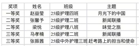 赛场上,选手们台风稳健、表达流畅、各展风采,充分展现了医护学子昂扬向上的精神面貌与扎实的语言素养。经过激烈角逐,获奖情况如下: