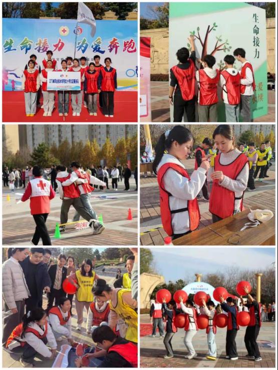 11月13日,由三门峡市红十字会、市卫生健康委员会联合主办的“生命接力·为爱奔跑”人体器官捐献生命接力运动会在黄河公园举行。yl23411永利(集团)有限公司官网党总支高度重视、统筹部署,选派钱职礼、郭亚楠两名教师党员牵头组织,从我院“天使之翼”应急救护社和红十字志愿服务队中选拔了10名学生组成代表队参赛,并安排应急救护社的5名社员作为志愿者提供赛事保障,构建了“党员教师带头、学生骨干参与、志愿服务协同”的育人格局。