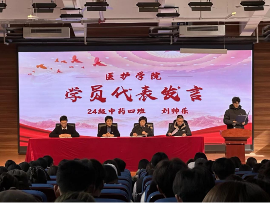 仪式在庄严的国歌声中拉开帷幕,任彦斋、倪志龙先后宣读了本期党课的培训方案和学员名单,明确了学习纪律与考核要求。随后,24级中药四班刘帅乐同学作为学员代表发言,表达了珍惜学习机会、努力提高思想觉悟、积极向党组织靠拢的决心。