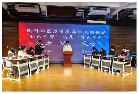本次辩论不仅展现了同学们的思辨风采,更深化了对生态保护路径的多元认识。白天鹅的保护,既离不开专业机构的科学引领,也需要民间力量的热情参与。唯有两者相辅相成、规范协同,才能共同构筑人与自然和谐共生的美好未来。