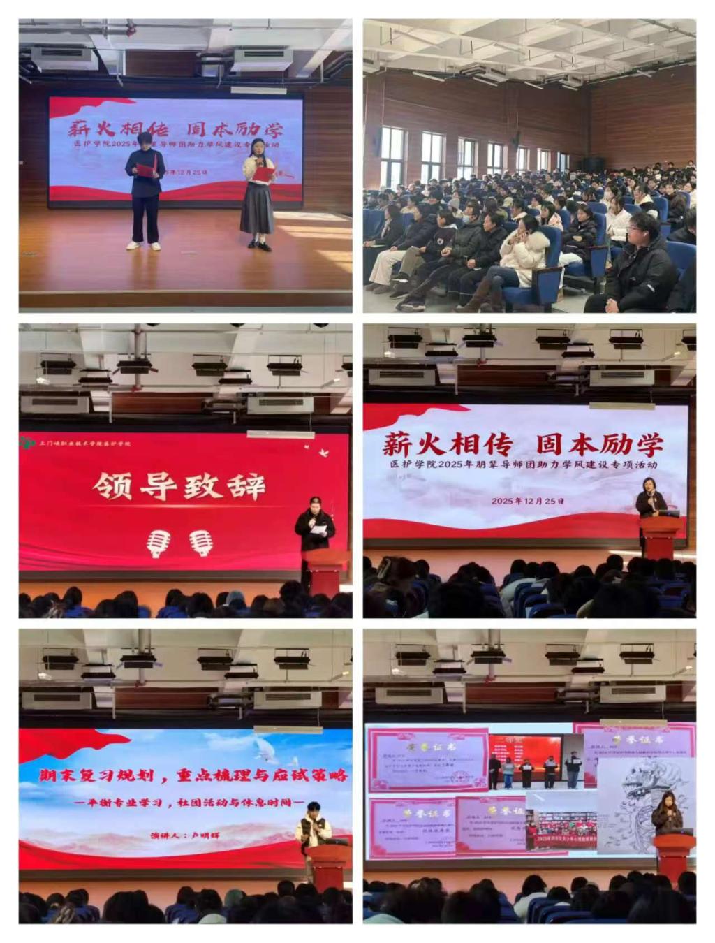在三期宣讲(大专两期、中专卫校一期)中,朋辈导师们围绕期末系统性复习、护士执业资格考试规划、医学基础课高效学法、英语四六级备考策略、优质学习资源推介、学业与部门活动平衡、笔记整理与知识管理等多元主题,结合自身实战经验与生动案例,展开了务实、细致、贴近学情的分享。现场新生专注聆听、踊跃互动,在笔尖与思维的流动中,收获的不仅是具体方法,更有应对挑战的信心与方向。