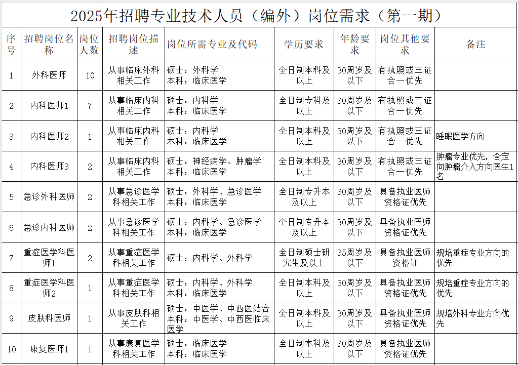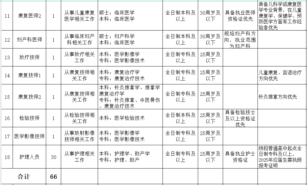 本次计划招聘专业技术人员66名,具体岗位及要求详见《2025年招聘专业技术人员(编外)岗位需求(第一期)》(附件1)。