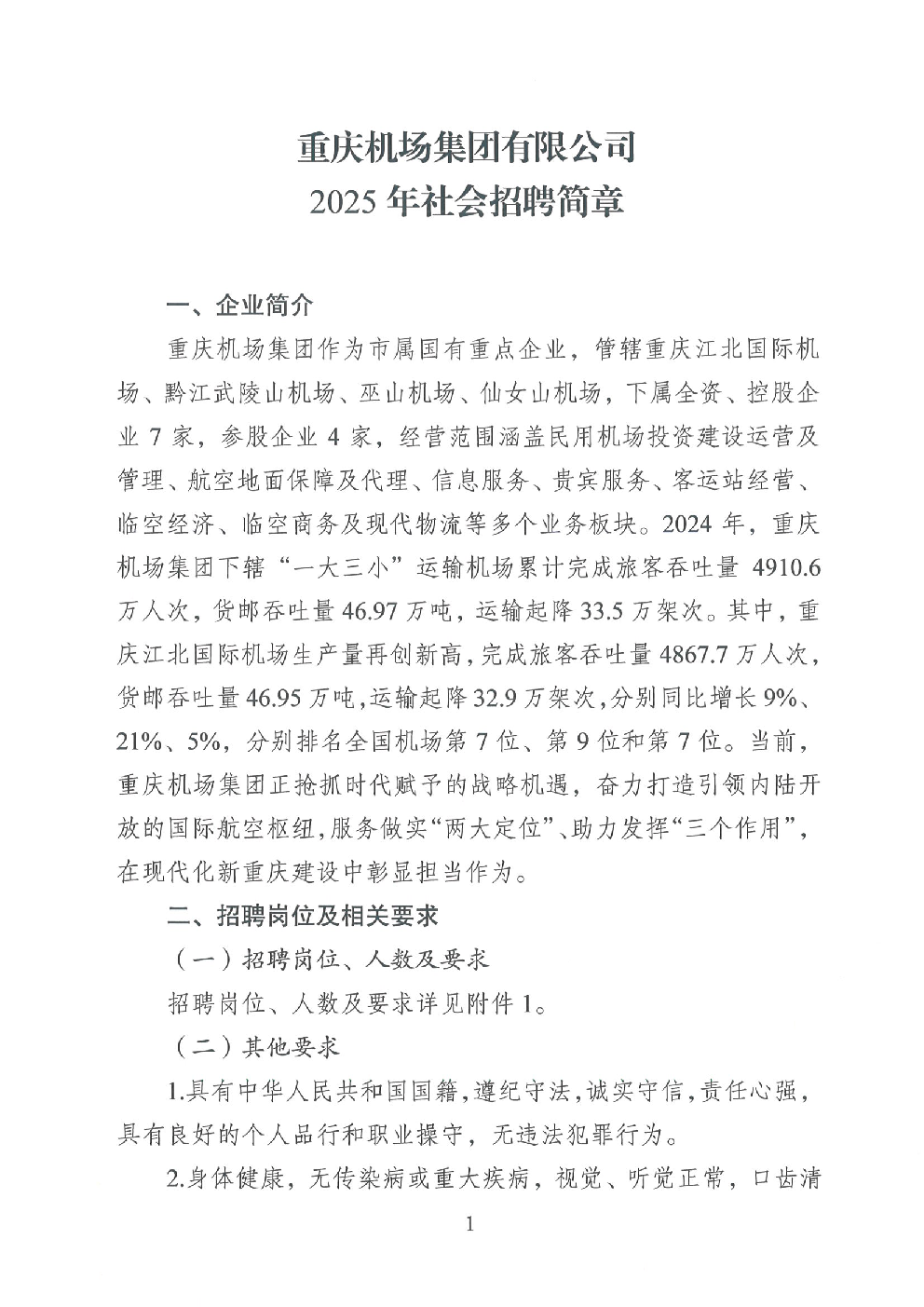 重庆机场集团有限公司2025年社会招聘简章(202名,含医师、护士、救护车驾驶员)