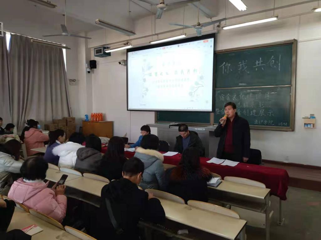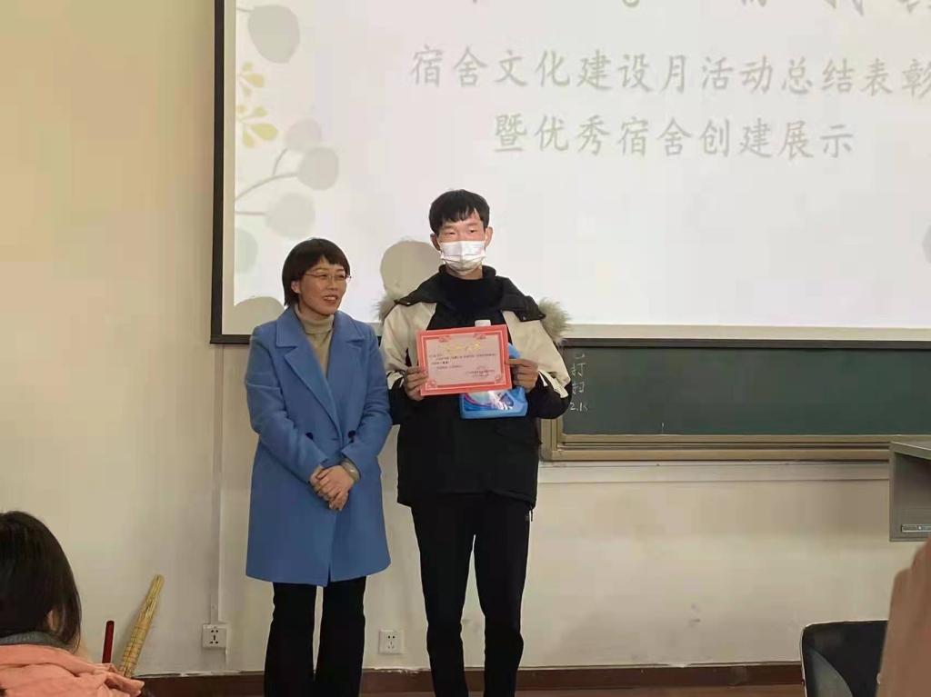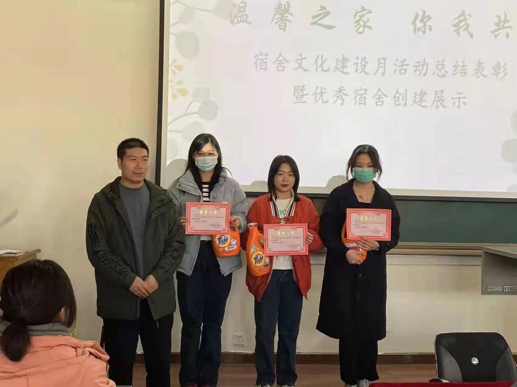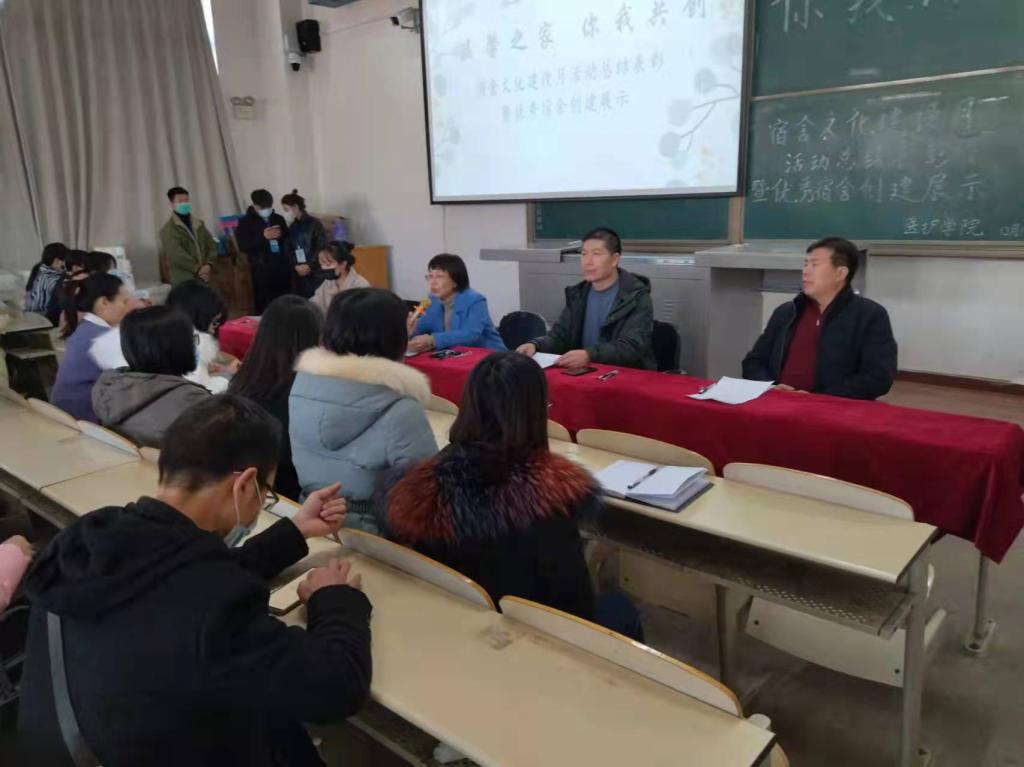 为了响应学校的号召,进一步创建和谐的校园生活环境,培养同学们的团队合作精神,增进宿舍成员之间的关怀、友爱之情,我院以“温馨之家 你我共创”为主题,于11月8日启动宿舍文化建设活动。历时一个多月,活动圆满完成。12月18日下午,“温馨之家 你我共创”宿舍文化建设月活动总结表彰暨优秀宿舍创建展示在1409举行。学生管理副院长周风雷、学生科科长闫慧峰、全体专兼职辅导员及新、老校区宿舍长代表参加了此次活动。