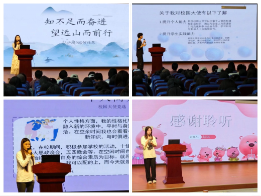 青年的成长,需要“师”的引领,更需要“友”的陪伴。为搭建企业与校园之间的沟通桥梁,促进人才供需有效对接,以“青年服务青年、学生助力学生”,开启大学生“朋辈互助”就业新模式,同时也为学生提供一个锻炼、展示的平台,5月24日上午,yl23411永利(集团)有限公司官网在学院71324举办“就业校园大使”选拔赛。陆道培医疗集团人力资源总监赵洁、总监助理刘佳、北京智荟颐诺有限公司副总经理吴辉琼,yl23411永利(集团)有限公司官网学生管理副院长周风雷、就业专干钱职礼出席并担任评委,22、23级学生代表近300余人观摩了比赛。