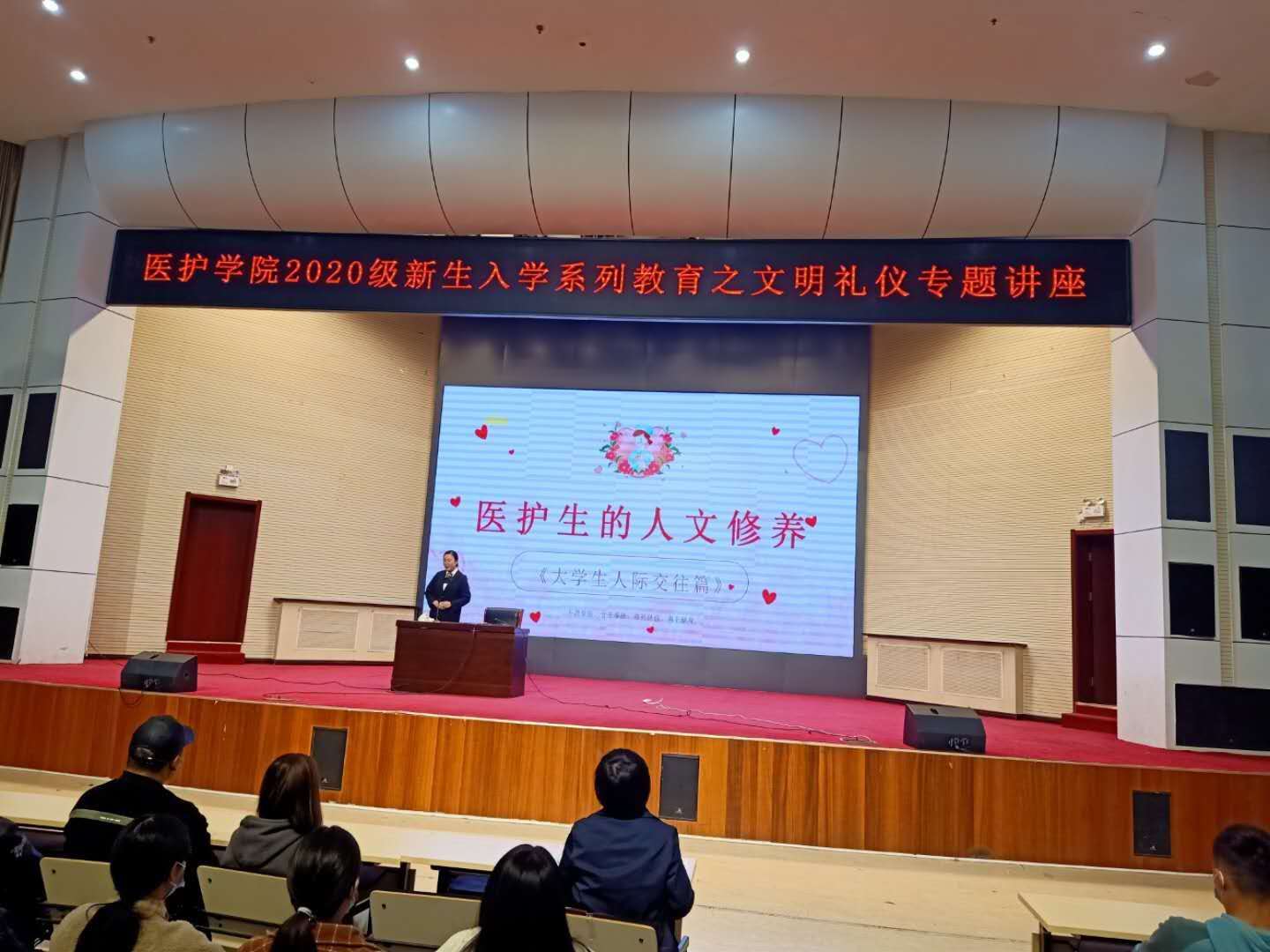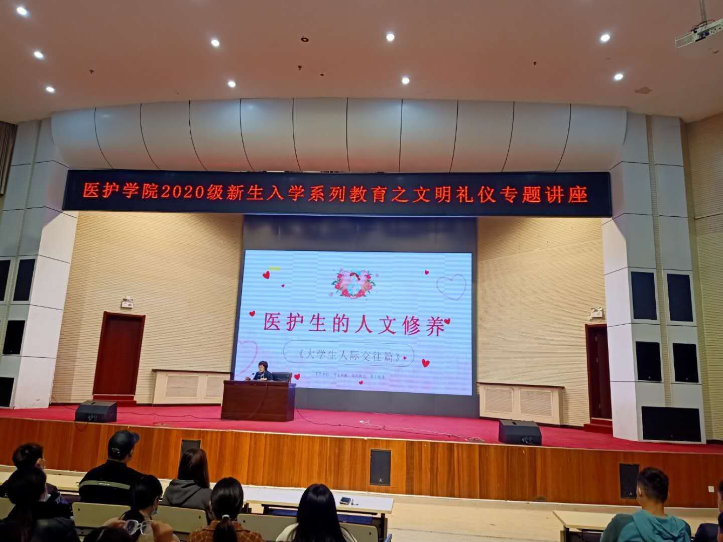10月28日晚,yl23411永利(集团)有限公司官网在学术报告厅举办文明礼仪专题讲座。讲座由yl23411永利(集团)有限公司官网教学科岳琳老师主讲,2020级全体新生聆听了讲座。